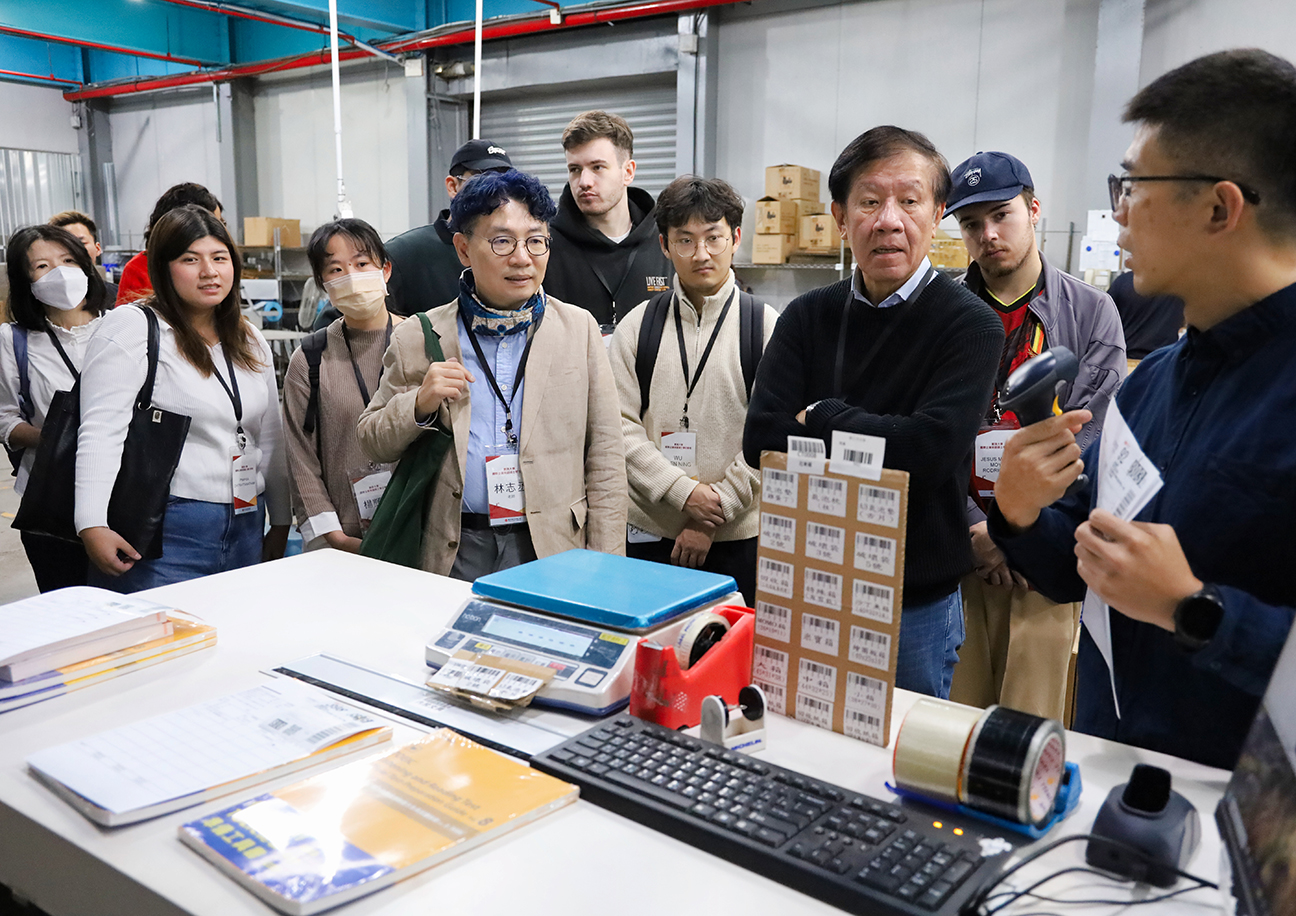 忠欣物流事業處余泰漢經理以全英文進行簡報,並帶領師生實地導覽倉儲空間,分享智慧科技如何提升物流效率與永續韌性。學生透過現場提問進行跨文化交流,了解智慧物流的實務運作。